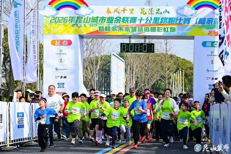 春日暖阳下,花海漫田畴。3月29日,2026年昆山城市业余联赛十公里路跑比赛(陆家站)暨陆家未来智慧田园彩虹跑在陆家镇未来智慧田园活力开跑。这场融合专业路跑竞速与亲子彩虹狂欢的运动派对,共吸引来自全国各地近600名跑者齐聚一堂,用脚步丈量春日乡野,在奔跑中感受“花漾昆山”的独特魅力。